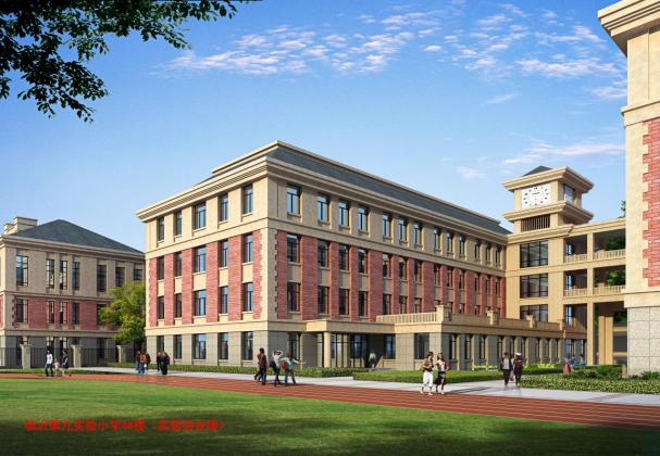 小學總平面布局將學校分為多個部分,教學樓設置于城市主干道一側,其余各部分通過一條連廊進行串聯,這條連廊形成的開放空間使得各功能部分之間聯系更加高效。學校生活區由宿舍樓及食堂構成,置于地塊南側,與教學部分分開,既減少相互干擾,又便于管理。學校入口開放空間明確,并通過雕樓及柱廊形成特色入口空間及入口形象。校園建筑力求樸素簡潔,部分采用白色涂料,明快而素凈。