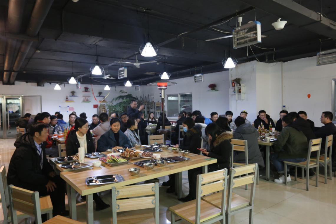 晚上18:00公司聚餐開始,餐廳工作人員給大家準備了菜肴,大家歡聚一堂,吃著燒雞,喝著啤酒,吃著自己包的水餃,每個人臉上洋溢著開心的笑容,大家暢所欲言,現場的氣氛達到了高潮,現場公院長開始發紅包,紅包雨不斷下起來,氣氛越來越熱烈,大家的熱情像開鍋的沸水一樣,收不住呀!